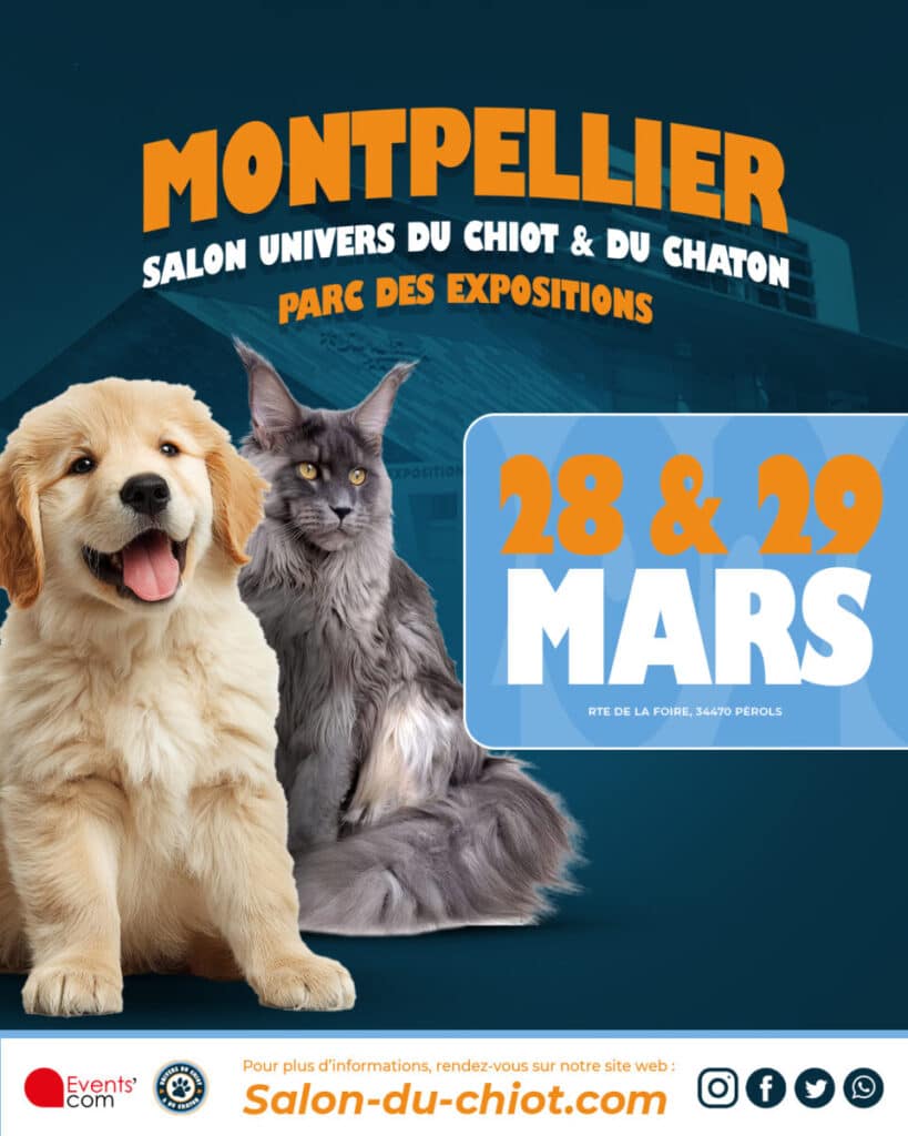 Events’com a le plaisir de vous accueillir sur le Salon « Univers du chiot » Parc des expositions de Montpellier (34), Route De La Foire, 34470 Pérols, France,